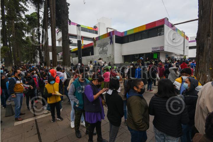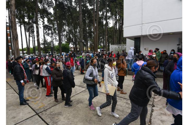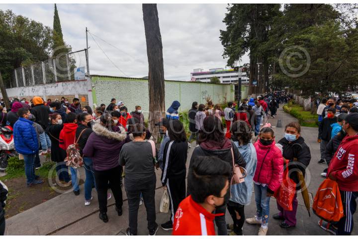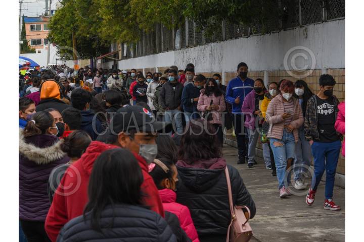Una larga fila se registró en las inmediaciones del Hospital del Niño en Toluca en donde se están vacunando a mayores de 12 años que no han sido inmunizado contra COVID-19 segundas dosis a menores de 12 a 17 años, refuerzo a jóvenes de 12 a 17 años con comorbilidad.