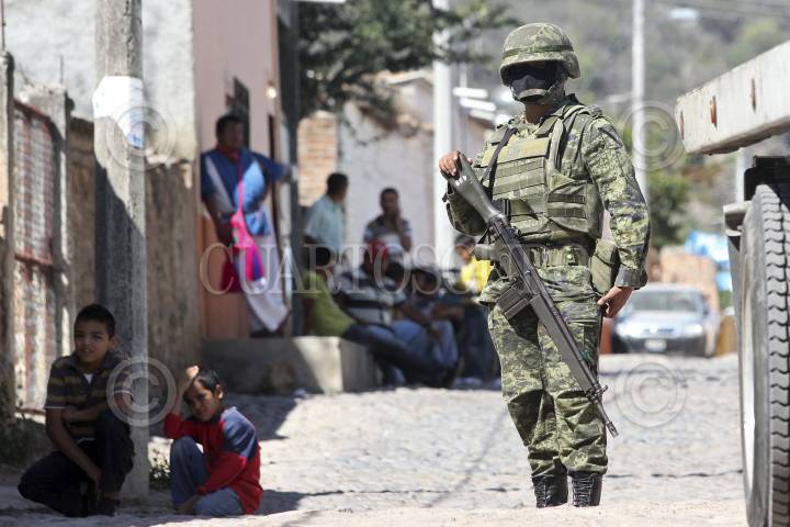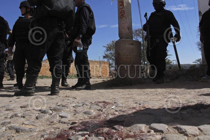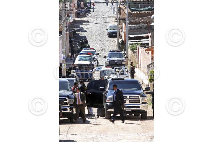 HOSTOTIPAQUILLO, JALISCO, 29ENERO2013.- Esta mañana en el poblado de Hostotipaquillo, un comando armado ataco el vehículo en donde viajaba el Director de la Policía de dicho municipio, Lucio Rosales Astorga, en el hecho perdieron la vida el mando policiaco, su escolta y un sicario, así como dos personas resultaron heridas, entre ellas la esposa del director. FOTO: FERNANDO CARRANZA GARCÍA /CUARTOSCURO.COM