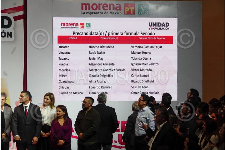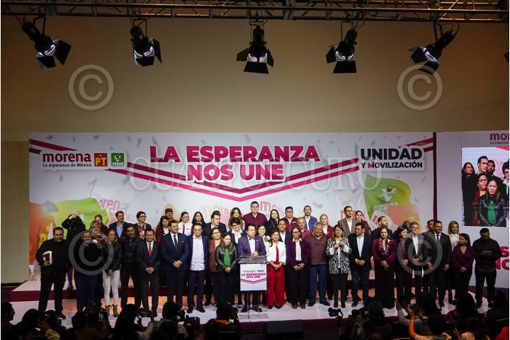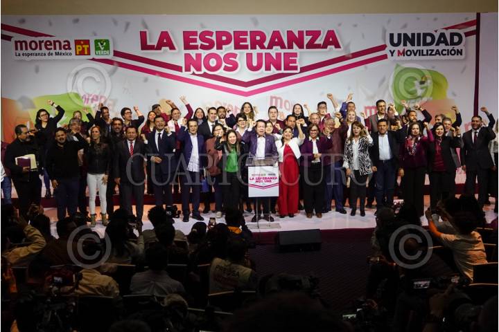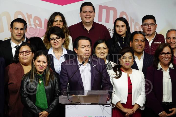 CIUDAD DE MÉXICO, 11NOVIEMBRE2023.- Los coordinadores estatales ganadores para los estados de Yucatán, Veracruz, Tabasco, Puebla, Guanajuato, Jalisco, Morelia, Chiapas y Ciudad de México fueron presentados por la comisión de elecciones encabezada por Mario Delgado, dirigente de Morena, esto en el Hotel Camino Real en Polanco. FOTO: ROGELIO MORALES /CUARTOSCURO.COM