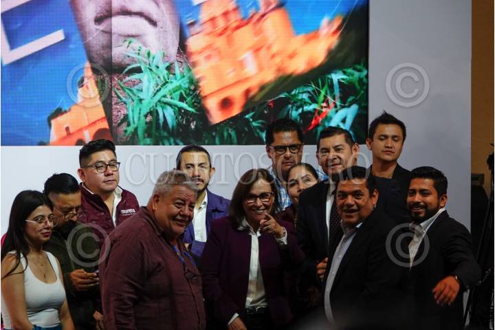 CIUDAD DE MÉXICO, 11NOVIEMBRE2023.- Rocío Nahle (Veracruz) y Alejandro Armenta Mier (Puebla) durante el anuncio de las y los coordinadores estatales ganadores para los estados de Yucatán, Veracruz, Tabasco, Puebla, Guanajuato, Jalisco, Morelia, Chiapas y Ciudad de México que fueron presentados por la comisión de elecciones encabezada por Mario Delgado, dirigente de Morena, esto en el Hotel Camino Real en Polanco. FOTO: ROGELIO MORALES /CUARTOSCURO.COM