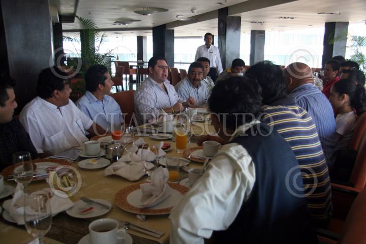 VILLAHERMOSA, TABASCO, 14MARZO2009.- Esta mañana en el restaurante del hotel Hilton, se sostuvo una reunión para estrechar lazos de unión entre el Presidente del Consejo Coordinador Empresarial de Tabasco (CCET) y líder de hoteleros; Luís Arcadio Gutiérrez León. En esta reunión y desayuno se tocaron temas de importancia relevantes con el diario acontecer para los tabasqueños, participando únicamente gráficos de las distintas casas editoriales y corresponsales tabasqueños. FOTO: MARCO POLO GUZMÁN/CUARTOSCURO.COM