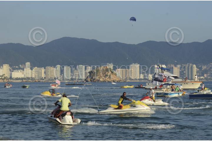 ACAPULCO, GUERRERO, 20NOVIEMBRE2014.- Organizaciones sociales, empresarios turísticos, restaurantero, hoteleros, comerciantes, transportistas y ciudadanos participan en una campaña ciudadana a favor de la paz, además realizaron una caravana acuática y llaman a los turistas para que visiten Acapulco. Más medio centenar de embarcaciones, motos acuáticas, bananas, lanchas y hasta yates portaban un moño blanco en señal de paz. En la playa Papagayo se concentraron unas 300 personas que participaron en la caravana acuática, misma que realizaron socios cooperativistas, prestadores de servicio, hoteleros, restauranteros y habitantes porteños. FOTO: BERNANDINO HERNÁNDEZ /CUARTOSCURO.COM
