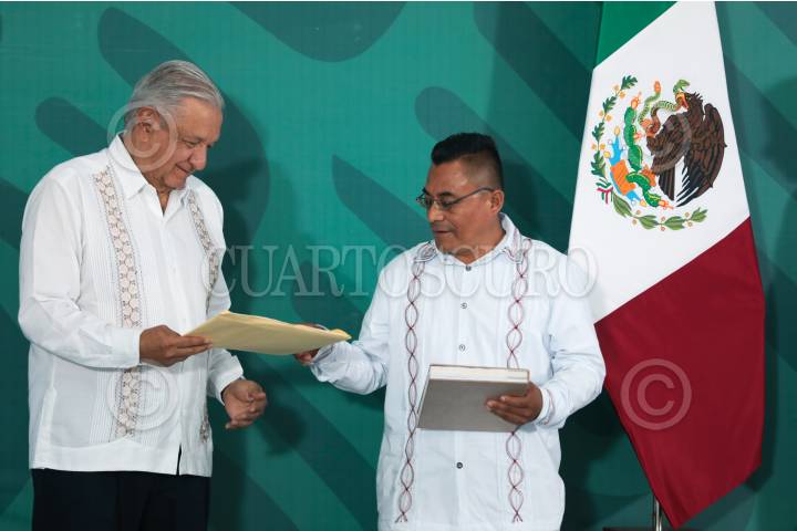 Andrés Manuel López Obrador, presidente de México, ofreció conferencia de prensa desde Oaxaca, lo acompañó: Alejandro Murat Hinojosa, gobernador de Oaxaca.