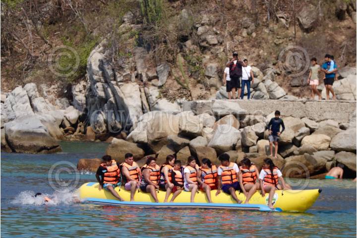 SANTA MARÍA HUATULCO, OAXACA, 07ABRIL2024.- Decenas de personas disfrutan de las playas de la costa de Oaxaca en el último día del periodo vacacional marcado por la Secretaría de Educación Pública. En la playa La Entrega de la agencia de Santa Cruz Huatulco, los visitantes aprovecharon el bajo oleaje para nadar y practicar diversas actividades acuáticas. FOTO: CAROLINA JIMÉNEZ/CUARTOSCURO.COM