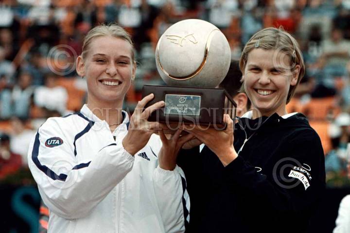 Anke Huber de Alemania (en la foto) y Barbara Schett de Australia se impusieron a las favoritas Mary Pierce y Sandrine Testud en la final de dobles femenil del Abierto Mexicano de Tenis.