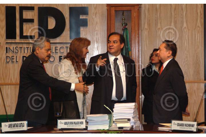 MEXICO, D.F. 30AGOSTO2004.- Los consejeros electorales Javier Santiago Castillo, Rosa María Mirón, Adolfo Rivapalacio (secretario ejecutivo) y Eduardo Huchim en la sesión extraordinaria del IEDF. FOTO:Iván Stephens/CUARTOSCURO.COM