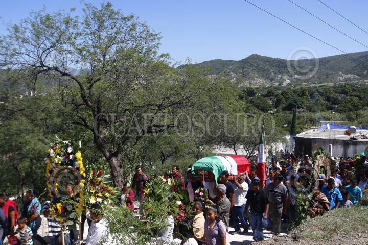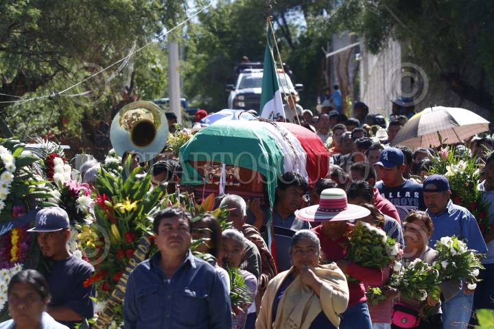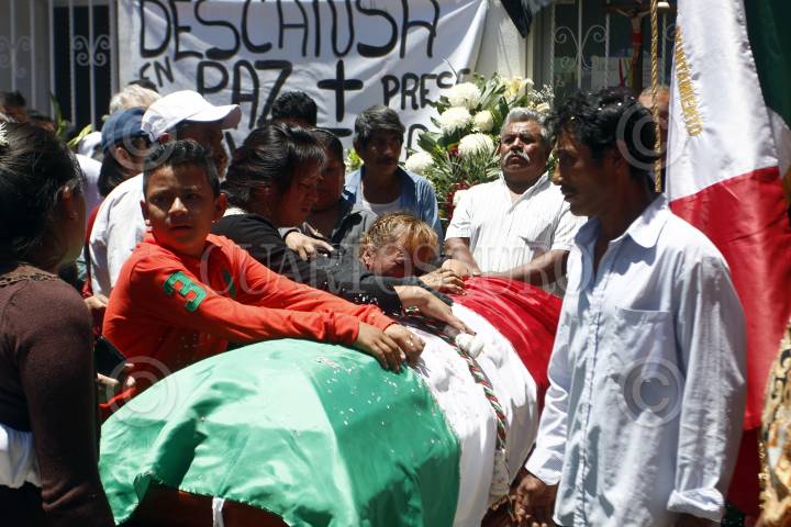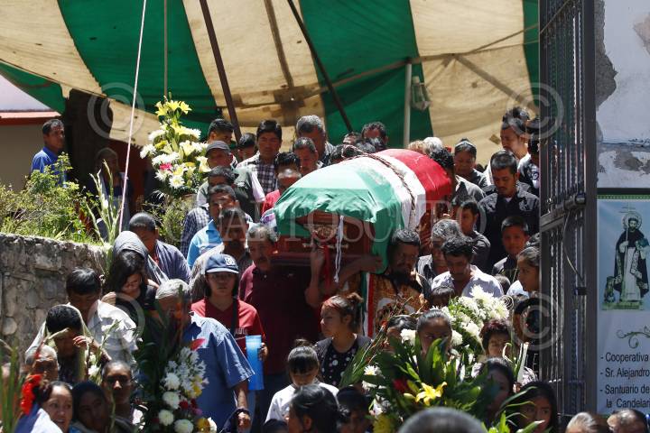 HUEHUETLÁN EL GRANDE, PUEBLA, 03AGOSTO2016.- Familiares y amigos despiden al alcalde del municipio de Huehuetlán El Grande, José Santamaría Zavala, luego que fuera asesinado por varios impactos de bala este 2 de agosto sobre la carretera con rumbo a la localidad cuando conducía su camioneta particular. FOTO: HILDA RÍOS /CUARTOSCURO.COM