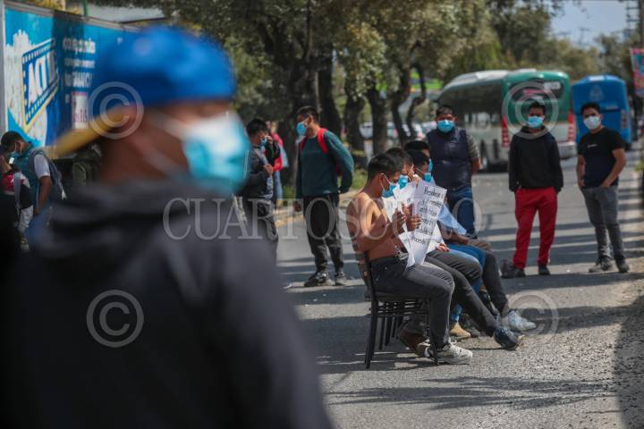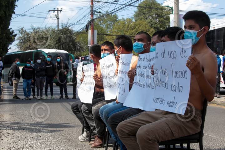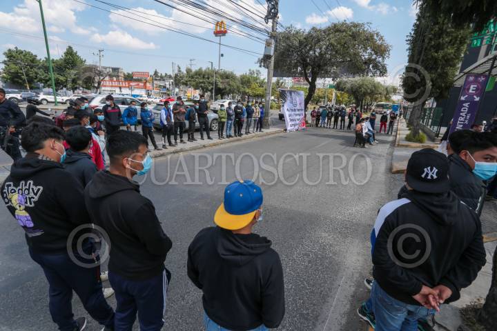 METEPEC, ESTADO DE MÉXICO, 17OCTUBRE2024.- Estudiantes de la Escuela Normal Rural “Lázaro Cárdenas del Río” Tenería arribaron a las inmediaciones de Pabellón Metepec en donde sostienen una reunión con autoridades de SEIEM y también iniciaron una huelga de hambre, para que sean cumplidas sus demandas entre ellas incrementar el presupuesto para este centro escolar así como un alto al hostigamiento de los retornarse; llegaron en los autobuses de Flecha Roja que fueron secuestrados el pasado 15 de octubre. FOTO: CRISANTA ESPINOSA AGUILAR /CUARTOSCURO.COM