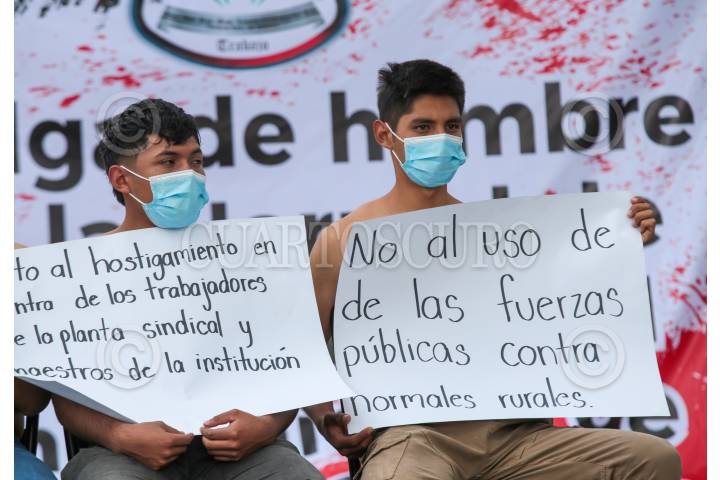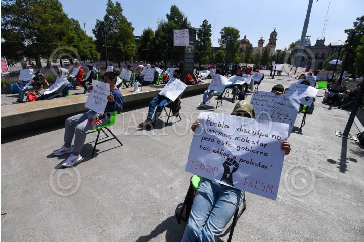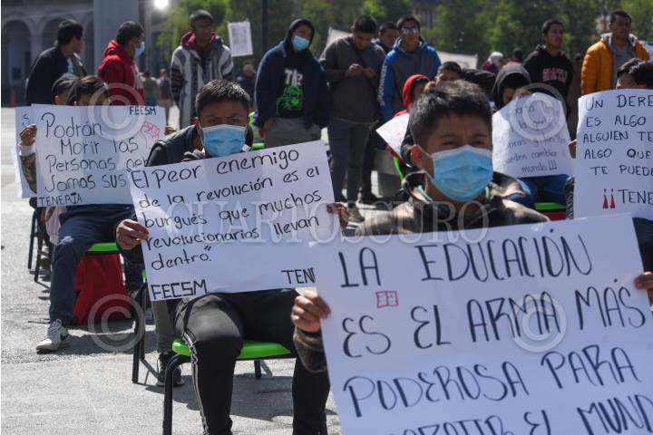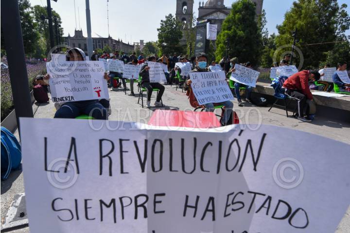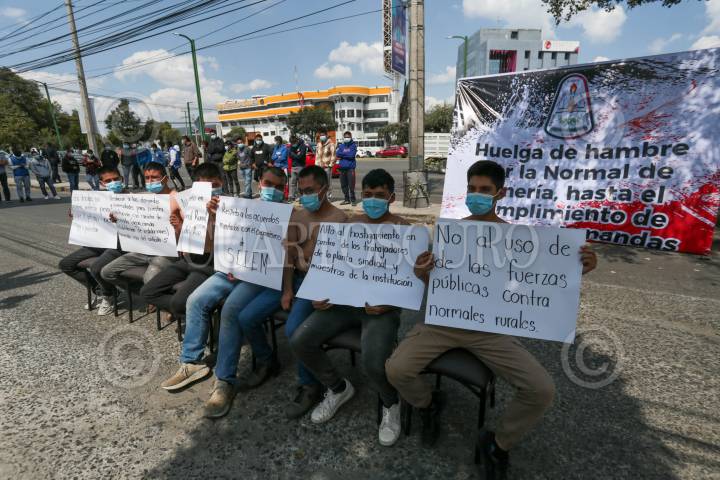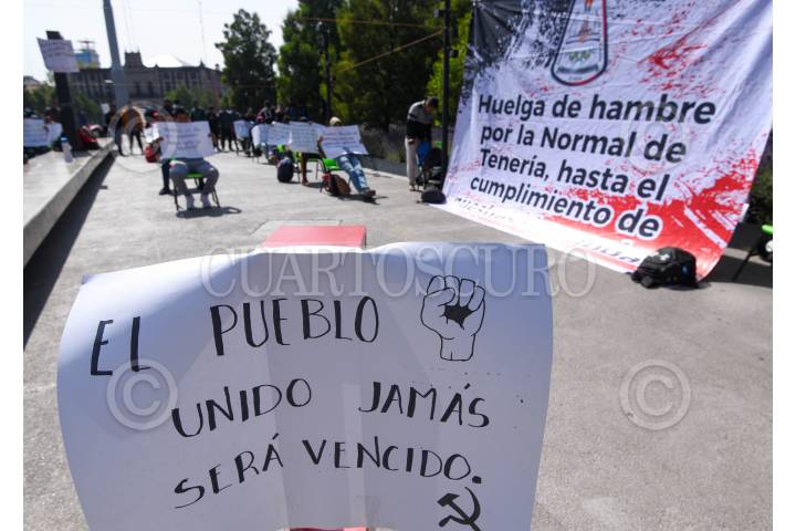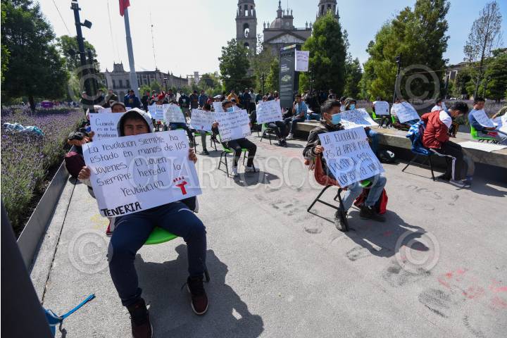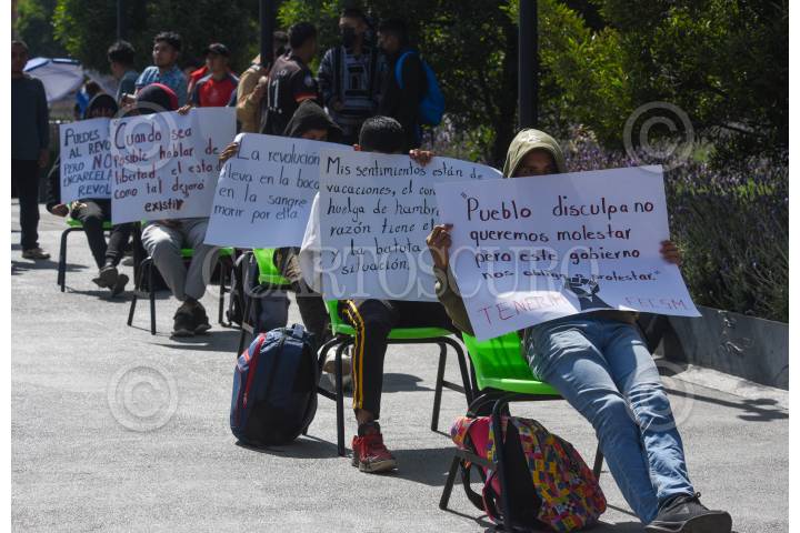 TOLUCA, ESTADO DE MÉXICO, 23OCTUBRE2024.- Estudiantes de la Escuela Normal Rural “Lázaro Cárdenas del Río” Tenería iniciaron una huelga de hambre en la Plaza de los Mártires, frente a Palacio de Gobierno, exigiendo mejoras educativas, aumento en el presupuesto para la institución así como mejoras en la escuela, ante las condiciones precarias en las que siguen operando. FOTO: CRISANTA ESPINOSA AGUILAR / CUARTOSCURO.COM