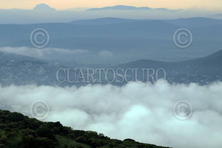 La neblina matutina cubre las vegas del oriente de Morelos.