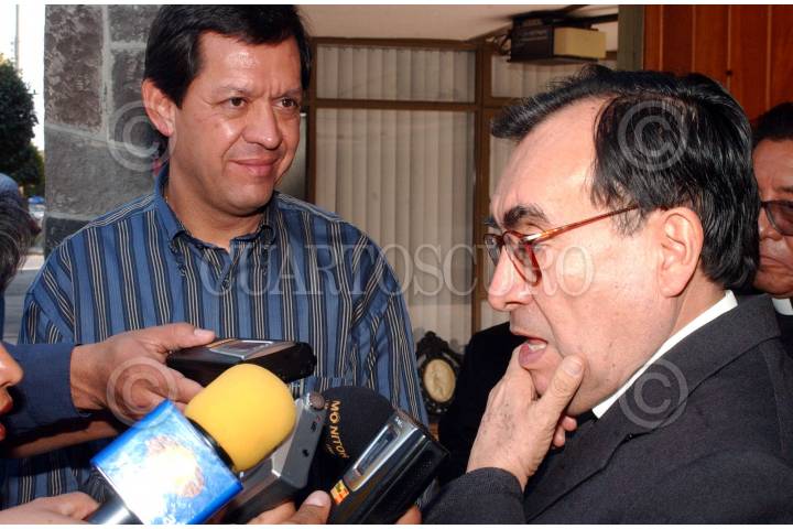 PUEBLA, PUEBLA, 15FEBRERO2006.- Roberto Campa, candidato a la presidencia de la República por el Partido Nueva Alianza, visitó al arzobispo Rosendo Huesca y Pacheco, como parte de su gira por el estado de Puebla. FOTO: CUARTOSCURO.COM