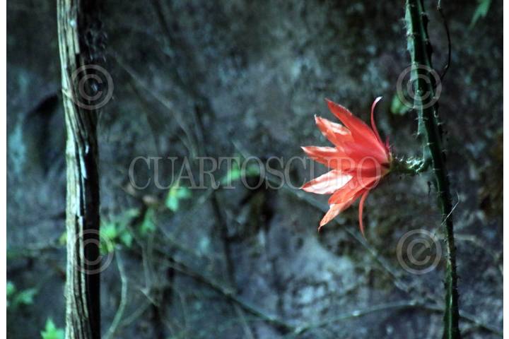 HUEYAPAN, MORELOS, 05MAYO2019.- El agua es el elemento vital, por ello se han desarrollado mitos en torno a ella. En Hueyapan, municipio indígena de reciente creación, pobladores se internan para llegar hasta el manantial Xantamalco, que aflora de las cavidades de una pared de piedra en la ribera del río Amatzinac, y que se alimenta del deshielo del Popocatépetl. Ahí llevan ofrendas de flores, dulces, galletas, velas, licor de agave y cigarros a “Los Aires”, duendes que viven en la profunda barranca. Desde los años 70, las personas han colocado líneas de manguera negra para conducir el líquido desde el manantial hasta sus casas, a través de la fuerza de gravedad. Con las ofrendas y rezos se busca que “Los Aires” garanticen el abasto durante el año. En la imagen una cactácea florece en una peña. FOTO: MARGARITO PÉREZ RETANA /CUARTOSCURO.COM