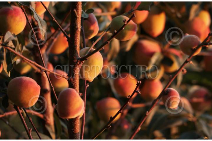 Duraznos maduros en una huerta del municipio indígena de Hueyapan.
