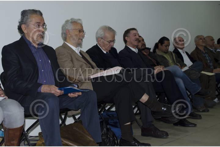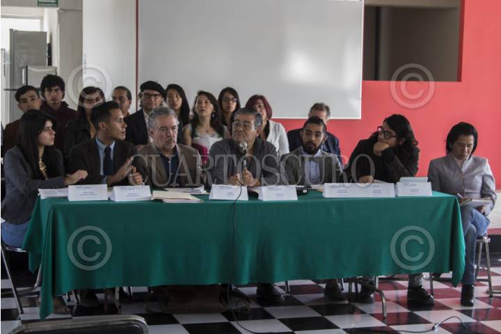 MÉXICO, D.F., 05OCTUBRE2012.- Hugo Aboites, Enrique Dussel, Manuel Peimbert, y Héctor Díaz Polanco, son observadores en la mesa de diálogo que se ha establecido para destrabar el conflicto estudiantil de la Universidad Autónoma de la Ciudad de México. FOTO: MOISÉS PABLO /CUARTOSCURO.COM