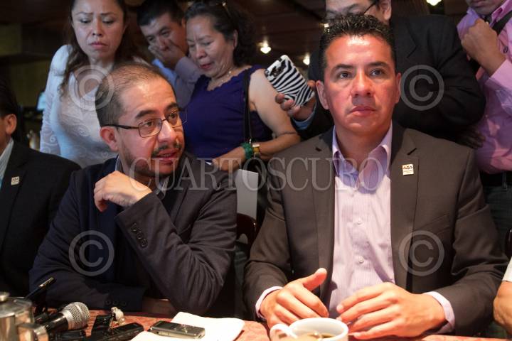 CIUDAD DE MÉXICO, 10MAYO2016.- Hugo Eric Flores, dirigente nacional de Encuentro Social, y Alejandro “el Pipo” Vázquez Cuevas, candidato a la gubernatura del Partido Encuentro Social (PES), hablaron del proceso electoral que vive al estado con miras al próximo 5 de junio en donde se renovará el ejecutivo estatal. FOTO: MOISÉS PABLO /CUARTOSCURO.COM