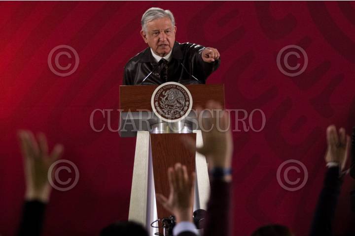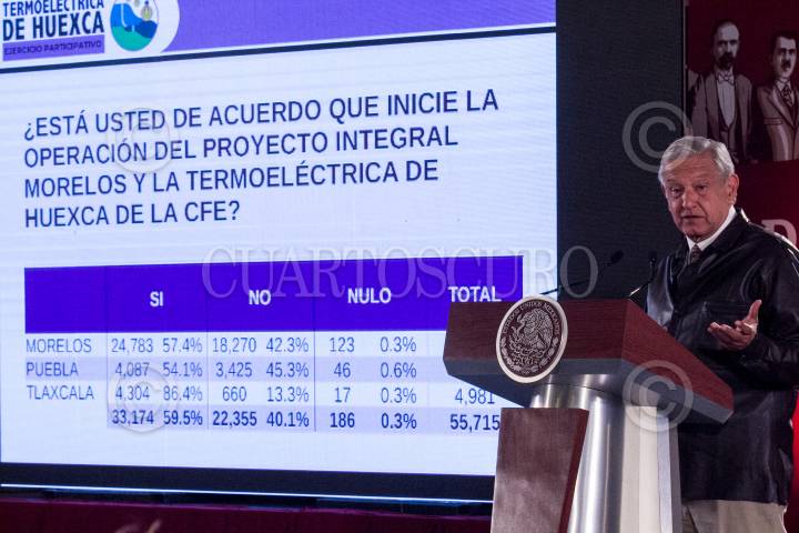 CIUDAD DE MÉXICO, 25FEBRERO2019.- Andrés Manuel López Obrador, presidente de México, durante su conferencia matutina para informar los resultados del conteo de votos tras la consulta ciudadana para el proyecto de la termoeléctrica en Morelos. El jefe del ejecutivo se dijo satisfecho con este ejercicio democrático. Asimismo, López Obrador mandó sus felicitaciones al director Alfonso Cuarón, tras la ceremonia de los Oscares, el día de ayer. Donde el mexicano consiguió tres estatuillas por su cinta Roma. FOTO: GALO CAÑAS /CUARTOSCURO.COM