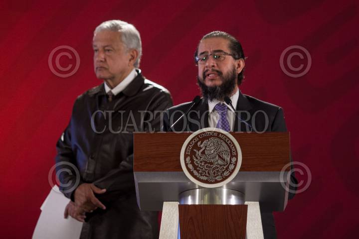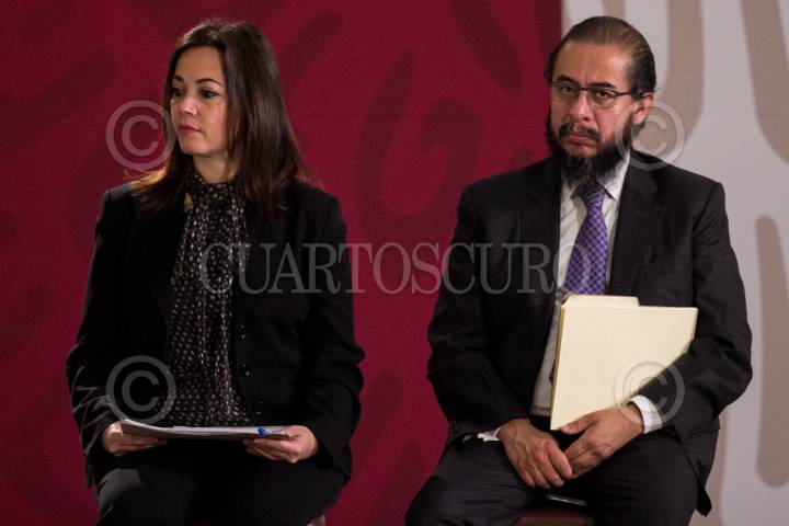 CIUDAD DE MÉXICO, 25FEBRERO2019.- Diana Álvarez Maury, subsecretaria de Desarrollo Democrático, Participación Ciudadana y Asuntos Religiosos, y Hugo Eric Flores, delegado federal en Morelos de los programas integrales de Bienestar, durante la conferencia matutina para informar los resultados del conteo de votos tras la consulta ciudadana para el proyecto de la termoeléctrica en Morelos. FOTO: GALO CAÑAS /CUARTOSCURO.COM