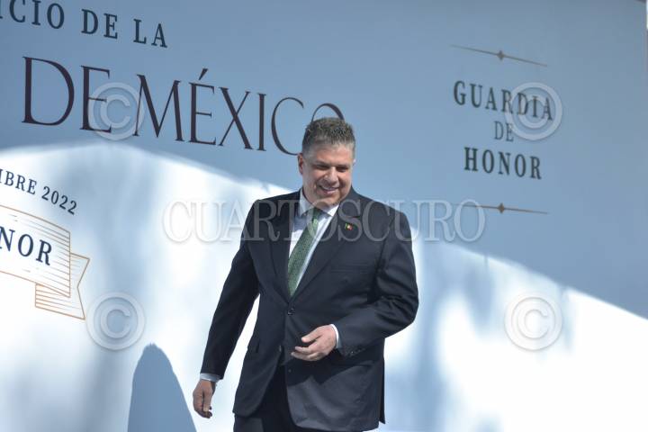 Hugo Gutiérrez Maldonado, secretario de Seguridad Pública de Veracruz, acudió a una guardia de honor en el monumento Miguel Hidalgo.