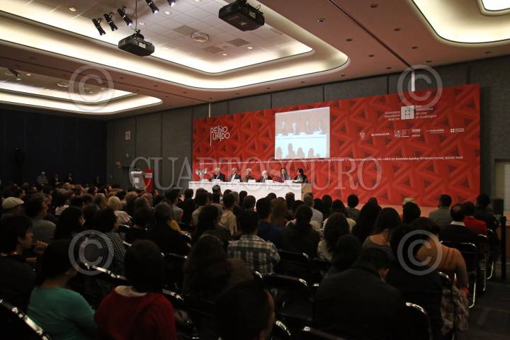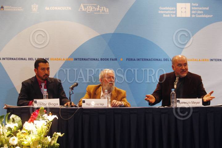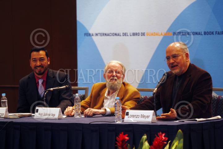 GUADALAJARA, JALISCO, 05DICIEMBRE2014.- Hoy en el marco de la edición 28 de la Feria Internacional del Libro de Guadalajara 2014 (FIL), se llevo a cabo el XIV Foro de Periodismo Cultural “Las Realidades de México y el Autoritarismo” y el cual estuvo encabezado por el poeta, Hugo Gutiérrez Vega y el historiador, Lorenzo Meyer. FOTO: FERNANDO CARRANZA GARCIA / CUARTOSCURO.COM