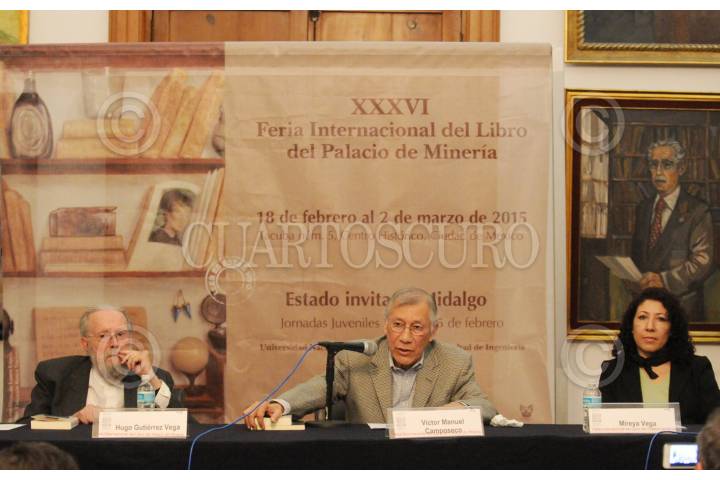 MEXICO, D.F., 20FEBRERO2015.- El escritor Víctor Manuel Camposeco presentò su libro "México en la Cultura (1949-1961) de la colección Periodismo Cultural del Conaculta, en el marco de la XXXVII FIL del Palacio de Minería. Le acompañó el poeta Hugo Gutierrez Vega y Mireya Vega. FOTO: CNCA /CUARTOSCURO.COM
