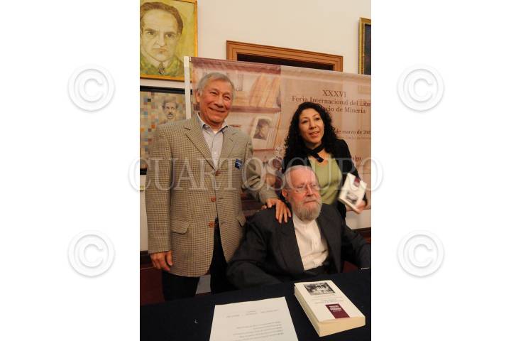 MEXICO, D.F., 20FEBRERO2015.- El escritor Víctor Manuel Camposeco presentó su libro "México en la Cultura (1949-1961) de la colección Periodismo Cultural del Conaculta, en el marco de la XXXVII FIL del Palacio de Minería. Le acompañó el poeta Hugo Gutierrez Vega y Mireya Vega. FOTO: CNCA /CUARTOSCURO.COM