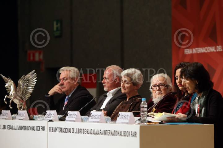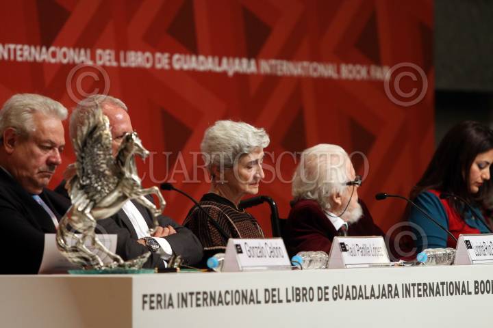 GUADALAJARA, JALISCO. 03DICIEMBRE2015.-Esta noche se llevo a cabo el Homenaje al Poeta y escritor Hugo Gutiérrez Vega, esto en el marco de la edición 29 de la Feria Internacional del Libro de Guadalajara FIL, que tiene como país invitado de honor al Reino Unido. FOTO: FERNANDO CARRANZA GARCIA / CUARTOSCURO.COM