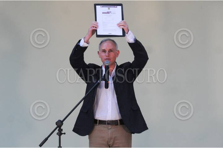 CIUDAD DE MÉXICO, 26SEPTIEMBRE2023. - El Dr. Hugo López-Gatell, subsecretario de Salud, presentó ante los medios, el documento que oficializa su registro como aspirante a la coordinación de los Comités de Defensa de la 4T en la Ciudad de México. FOTO: DANIEL AUGUSTO /CUARTOSCURO.COM