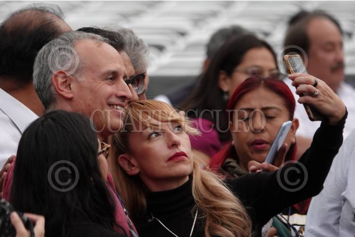 CIUDAD DE MÉXICO, 24OCTUBRE2023.- Hugo López-Gatell se tomó una selfie con simpatizantes durante su llegada al Encuentro con la Militancia en la Ciudad de México en el Estadio Ciudad de los Deportes. FOTO: GRACIELA LÓPEZ /CUARTOSCURO.COM
