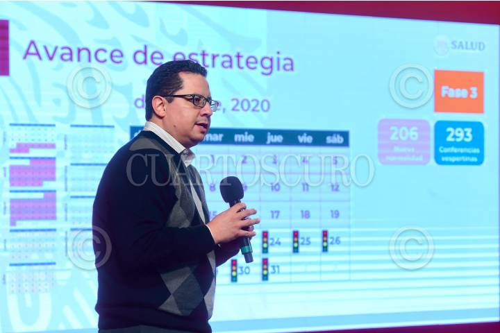 Hugo López-Gatell Ramírez, subsecretario de Prevención y Promoción de la Salud, durante el informe diario de COVID-19 que se lleva a cabo en Palacio Nacional donde se destacó el tema de la aplicación y distribución de la vacuna.