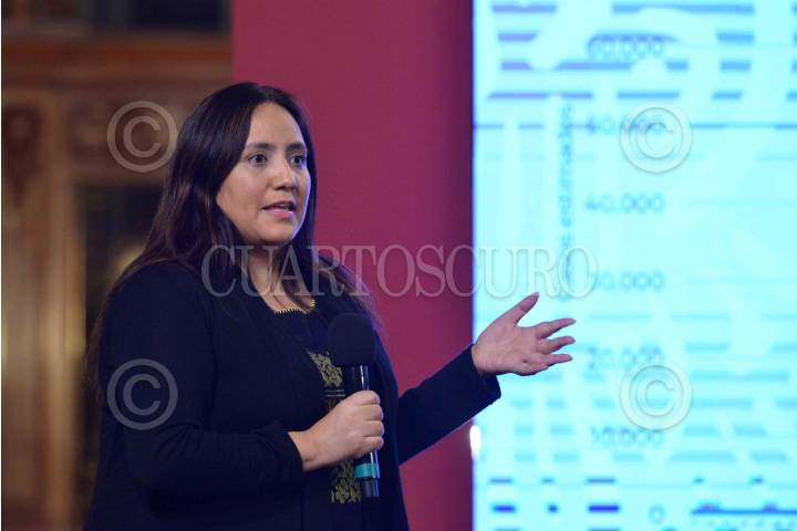 María Luisa Soriano Rodríguez y Javier Acosta, durante la conferencia de COVID-19 en Palacio Nacional.