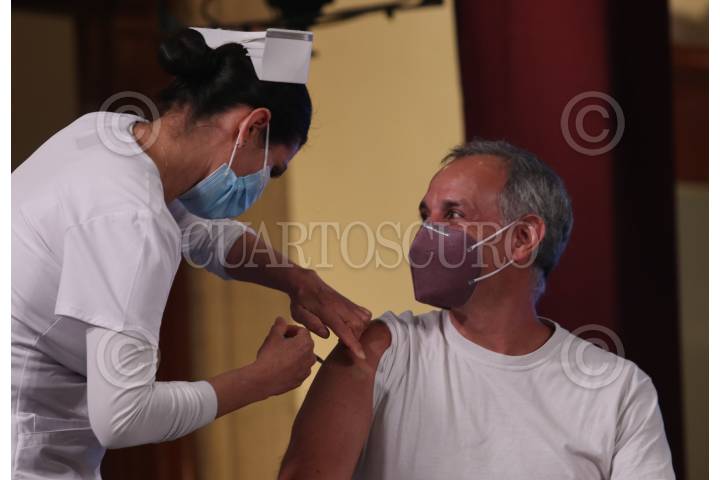 Durante la conferencia que se llevo a cabo el Hugo López-Gatell Ramírez, subsecretario de Prevención y Promoción de la Salud se aplicó la dosis contra Influenza