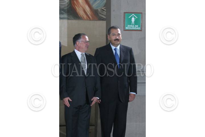 Mèxico, D.F., 03ENERO2005.- Mariano Azuela Huitrón, presidente de la Suprema Corte de Justicia de la Nación y Manlio Fabio Beltrones, presidente de la Cámara de Diputados se reunieron en la Suprema Corte. En la imagen, el magistrado y el diputado federal durante una reunión que sostuvieron con motivo del informe de Mariano Azuela el 15 de Diciembre del 2004. FOTO: Moisés Pablo/CUARTOSCURO.COM