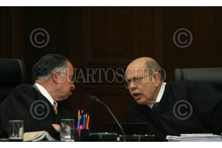 MÉXICO, D.F., 06MARZO2007.- Los ministros Mariano Azuela Huitrón y José de Jeús Gudiño, durante la sesión en la Suprema Corte de Justicia de la Nación. FOTO: MOISÉS PABLO/CUARTOSCURO.COM