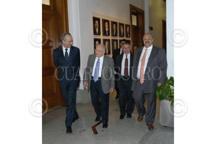 MEXICO, D.F., 29AGOSTO2006.- El secretario de Hacienda, Francisco Gil Díaz, el ministro jubilado Vicente Aguinaco Alemán, el secretario de Educación Pública, Reyes Tamez Guerra y el presidente de la Suprema Corte de Justicia de la Nación (SCJN), ministro Mariano Azuela Huitrón, recorren la Pinacoteca Retratos vivos, inaugurada hoy en el Alto Tribunal. La obra pictórica esta conformada por rostros de quienes han sido protagonistas y testigos de la SCJN en sus diversas épocas. FOTO: Victor Ortíz/CUARTOSCURO.COM