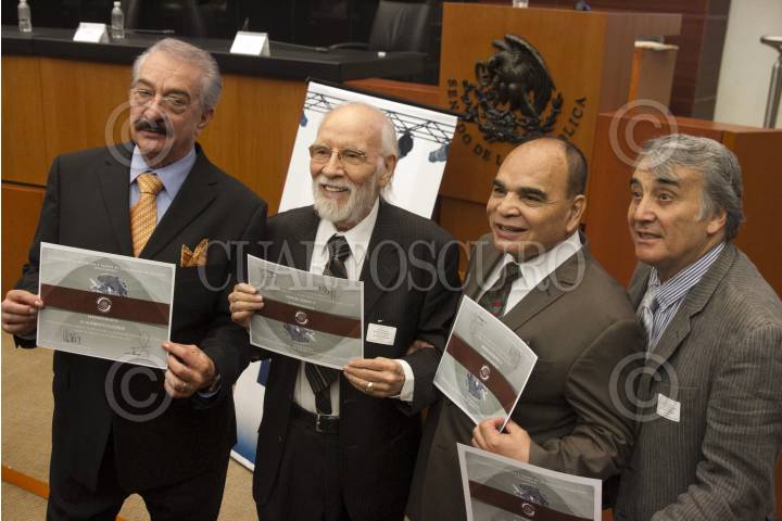 CIUDAD DE MÉXICO, 26ABRIL2017.- Los actores Humberto Elizondo, Aarón Hernán, Salvador Najar, y Eduardo Liñan, recibieron un reconocimiento por su trayectoria en el Senado de la República. FOTO: MOISÉS PABLO /CUARTOSCURO.COM