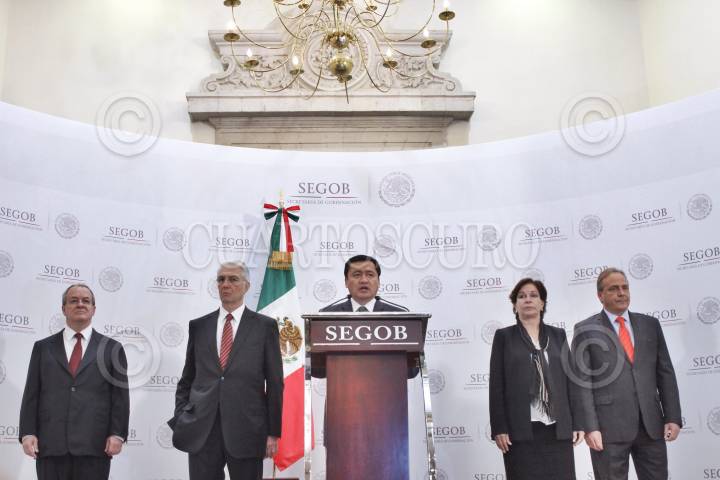 MÉXICO, D.F., 15JULIO2014.- Miguel Ángel Osorio Chong, secretario se Gobernación, anunció la creación de la coordinación integral para la atención integral de la frontera sur, la cual será encabezada por el senador Humberto Domingo Mayans Canabal. FOTO: MOISÉS PABLO /CUARTOSCURO.COM