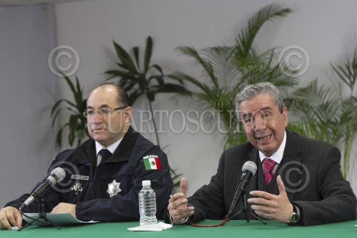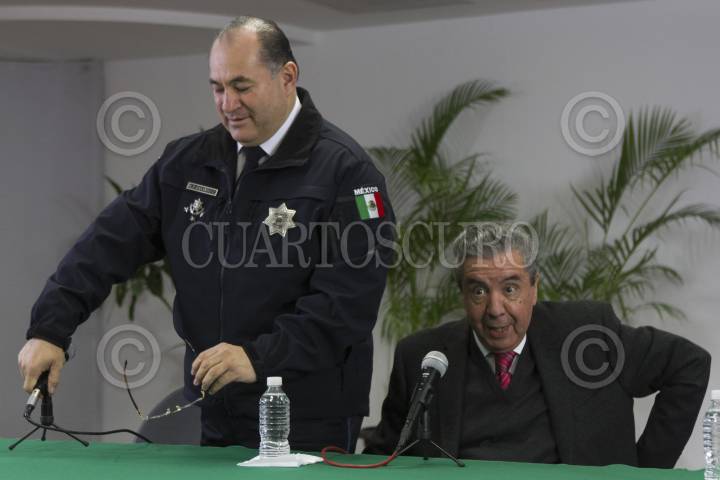 CIUDAD DE MÉXICO, 10FEBRERO2016.- Enrique Galindo, titular de la Policía Federal, y Humberto Roque Villanueva, subsecretario de Población, Migración y Asuntos Religiosos, ofrecieron una rueda de prensa en la Secretaría de Gobernación para hablar sobre el operativo de seguridad en torno a la visita del Papa Francisco. FOTO: MOISÉS PABLO /CUARTOSCURO.COM