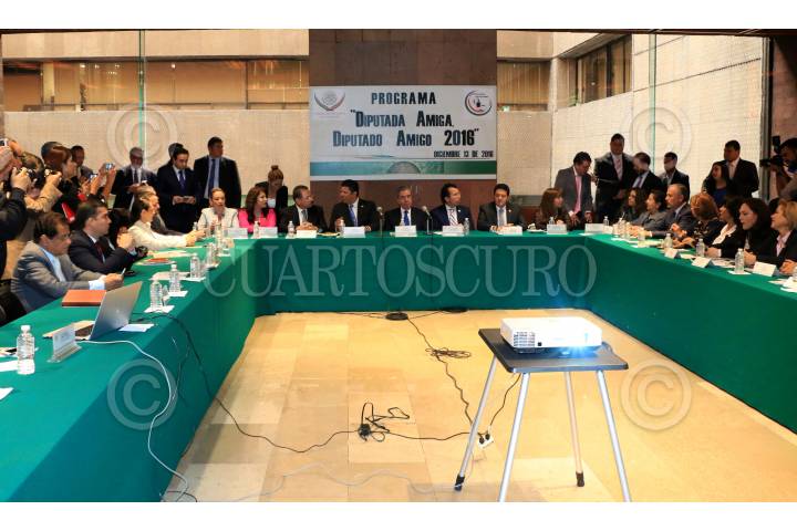 CIUDAD DE MÉXICO, 13DICIEMBRE2016.- Humberto Roque Villanueva, subsecretario de Población, Migración y Asuntos Religiosos de la SEGOB, Gonzalo Guizar, presidente de la Comisión de Asuntos Migratorios de la Cámara de Diputados y Javier Bolaños, presidente de la mesa directiva de la Cámara de Diputados, encabezaron la reunión donde presentaron el programa “Diputada Amiga Diputado Amigo 2016”. FOTO: SAÚL LÓPEZ /CUARTOSCURO.COM