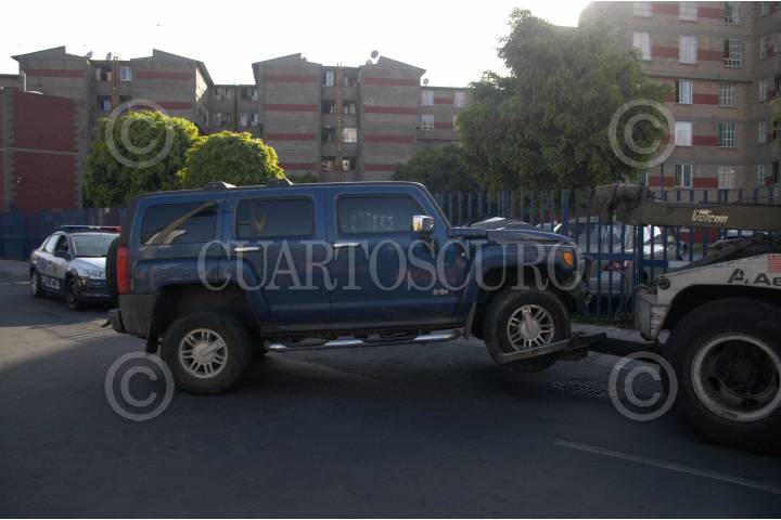 MÉXICO, D.F., 05JUNIO2009.- Policías de la Secretaria de Seguridad Publica del D.F. después de una persecución detuvieron a un sujeto que se impacto con una Hummer que se había robado minutos antes. La detención se realizo en la lateral de avenida Insurgentes Norte y el eje 2 Norte. FOTO: SAÚL LÓPEZ/CUARTOSCURO.COM