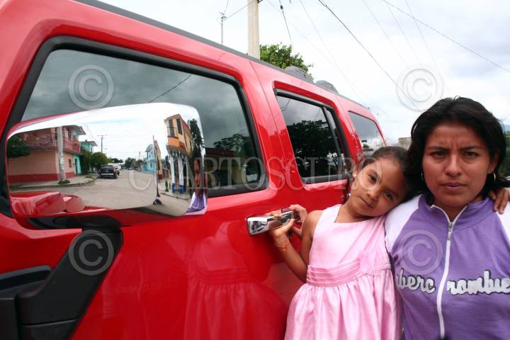 OAXACA, OAXACA, 18JUNIO2009.-Iraní Contreras Aragón la joven niña originaria de Pochutla en la costa de Oaxaca, recibió este jueves la Hummer H3 color ladrillo que se gano en el sorteo que se realizo el 22 de mayo organizada por la sección 59 del sindicato nacional de trabajadores. Acompañada de su madre, Irma Aragón Pérez, la menor recibió las llaves del vehículo. La joven madre de 26 años dijo que venderá la camioneta para comprar un terreno y edificar una casa para la menor. Su situación económica la consideró como mala, por lo cual no tiene posibilidades de mantener el servicio de la Hummer. FOTO: MAX NÚÑEZ/CUARTOSCURO.COM