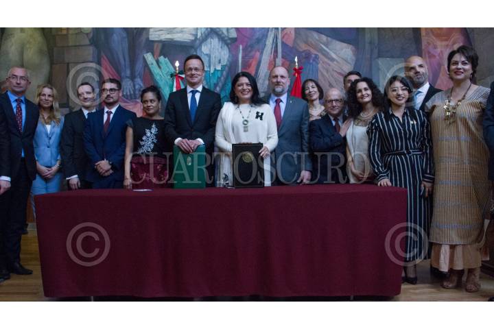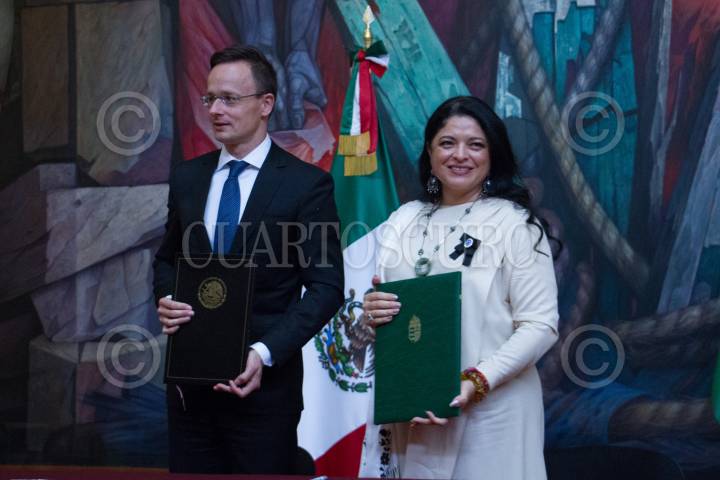 CIUDAD DE MÉXICO, 09ABRIL2019.- Péter Szijjártó, Ministro de Asuntos Exterioresde Comercio de Hungía y Alejandra Frausto Guerrero, Secretaria de Cultura encabezaron la firma del "Acuerdo de Cooperación entre México y Hungría", para la restauración del Templo y Antiguo Convento de la Natividad en Tepoztlán, Morelos, y el Templo del Sagrado Corazón de Jesús en la Colonia Juárez de la Alcaldía Cuauhtémoc. FOTO: ROGELIO MORALES /CUARTOSCURO.COM
