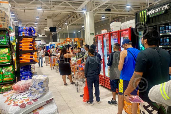 SAN PEDRO MIXTEPEC, OAXACA, 18JUNIO2025.- Pobladores del municipio costero de San Pedro Mixtepec realizaron compras ante la proximidad del huracán Erick, categoría 3. En varios supermercados se registraron largas filas y el desabasto de productos básicos. Autoridades locales habilitaron tres albergues, a los que comienzan a llegar algunas familias. Se prevé que el huracán toque tierra la madrugada del jueves 19 de junio. FOTO: CAROLINA JIMÉNEZ MARISCAL / CUARTOSCURO.COM