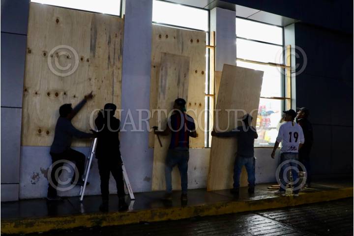 SAN PEDRO MIXTEPEC, OAXACA, 18JUNIO2025.- Comerciantes del municipio de San Pedro Mixtepec colocan tablas en puertas y ventanas como medida preventiva ante la llegada del huracán Erick, categoría 3. En la zona también se reportan compras en supermercados, habilitación de albergues y la llegada de algunas familias a estos espacios. Se prevé que el fenómeno toque tierra la madrugada del jueves 19 de junio. FOTO: CAROLINA JIMÉNEZ MARISCAL / CUARTOSCURO.COM