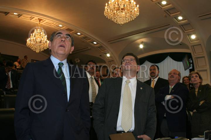 CAMPECHE, CAMPECHE, 08AGOSTO2008.-El Secretario de Gobernación, Juan Camilo Mouriño Terrazo, asistió esta mañana, con la representación personal del Presidente de la República, Felipe Calderón Hinojosa, al V Informe de Gobierno del mandatario estatal de Campeche, Jorge Carlos Hurtado Valdés. FOTO: CUARTOSCURO.COM