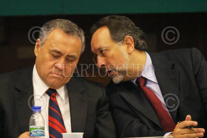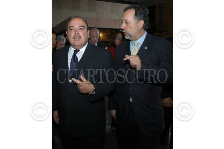 MEXICO, D.F., 02AGOSTO2006.-Los legisladores Alberto Aguilar Iñarritu y Enrique Jackson, durante la sesión de la Comisión Permanente del Senado. FOTO: Moisés Pablo/CUARTOSCURO.COM