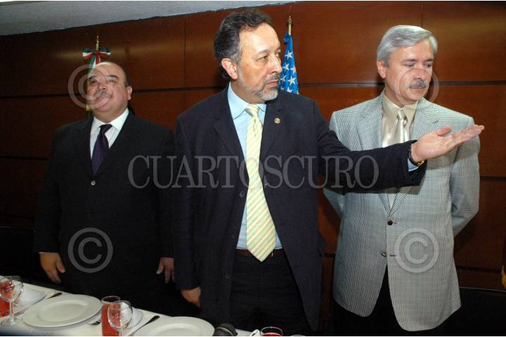 MEXICO, D.F. 24FEBRERO2005.- Tony Garza, embajador de Estados Unidos en México, José Alberto Aguilar Iñarritú, presidente del Grupo de Amigos México-Estados Unidos y Manlio Fabio Beltrones, presidente de la mesa directiva de la cámara de diputados en el salón de plenos. FOTO: Nelly Salas/CUARTOSCURO.COM