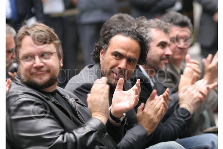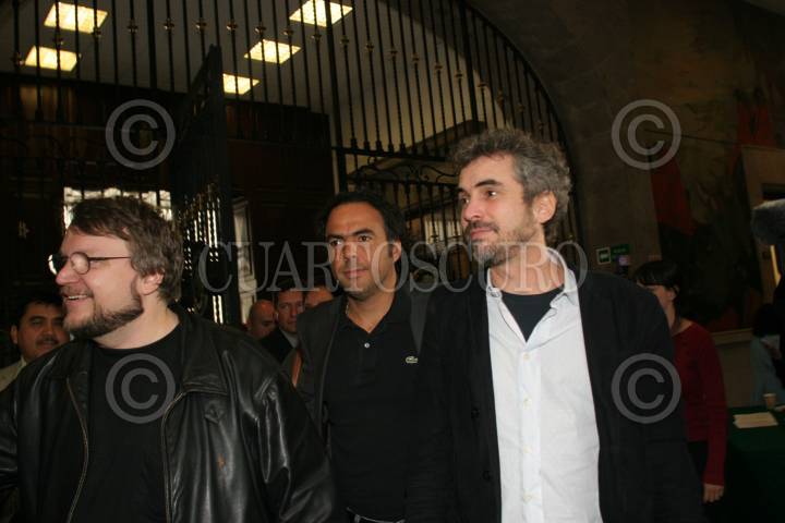 MEXICO, D.F. 21MARZO2007.- Los cineasta Guillermo del Toro, Alejandro Gonzalez Iñarritu y Alfonso Cuarón durante la ceremonia donde el senado de la República les entregó un reconocimiento por su descatado trabajo. FOTO: NELLY SALAS/CUARTOSCURO.COM