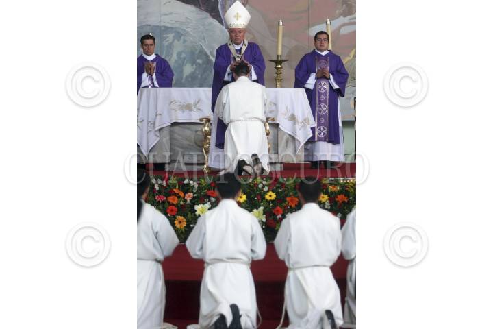 GUADALAJARA, JALISCO, 24DICIEMBRE2011.- Esta mañana en una Ceremonia magna encabezada por el Sr. Cardenal Juan Sandoval Iñiguez, 44 nuevos Diáconos se ordenaron; 41 de ellos pertenecientes al Seminario Mayor de Guadalajara y tres procedentes de Angola, África en la Parroquia de San Bernardo. FOTOS- FERNANDO CARRANZA GARCIA.
