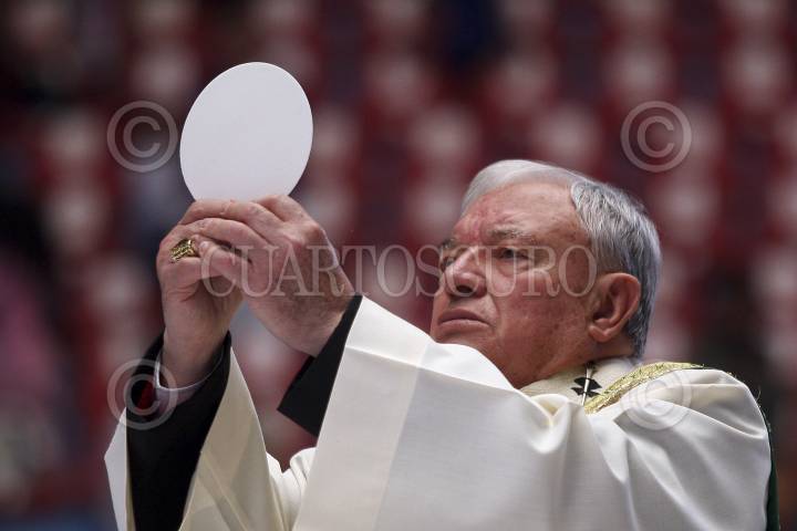 GUADALAJARA, JALISCO, 29ENERO2012.- El Cardenal, Juan Sandoval Iñiguez, ofició una misa de despedida, en donde agradeció a Dios, a los directivos del seminario y a todos lo fieles que siempre lo acompañaron durante su carrera al frente de Arquidiócesis. El evento tuvo lugar en el Auditorio Benito Juárez. FOTO: FERNANDO CARRANZA GARCIA/CUARTOSCURO.COM