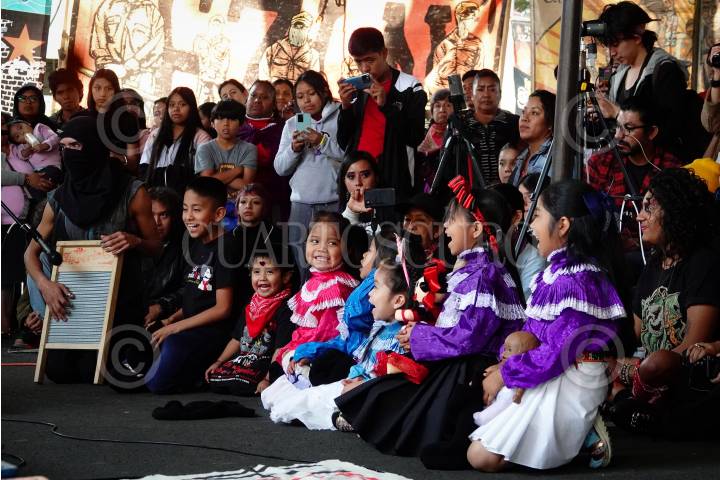 CIUDAD DE MÉXICO, 12OCTUBRE2024.- Niños de la comunidad otomí durante el Festival de la resistencia y la digna rebeldía, organizada por la comunidad a cuatro años de la toma de las instalaciones del INPI, ahora, Casa de los Pueblos y Comunidades Indígenas. FOTO: ROGELIO MORALES /CUARTOSCURO.COM